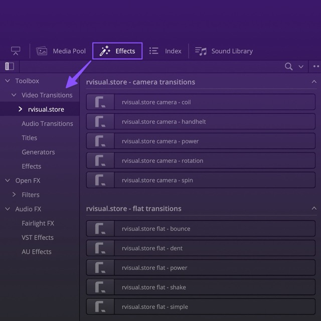 You can find all the installed effects in the toolbox, listed under rvisual.store. Get ready to have some fun!