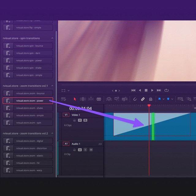 Just drag and drop the transitions directly into your cuts on the timeline. Make sure there's a bit of extra clip duration between the two clips for the transition to fit. After that, adjust the length of the effect, and you're all set!