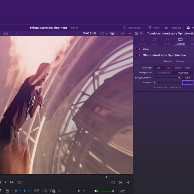 Every effect includes a "Samples" slider that adjusts the quality of the motion blur. Setting it to 0 turns it off, 2 is the default, and you can go all the way up to 100 for the best quality. But be cautious! Higher quality settings can make render times really long. We recommend sticking between 0 and 10. Use higher values only if you're aiming for a super realistic effect.