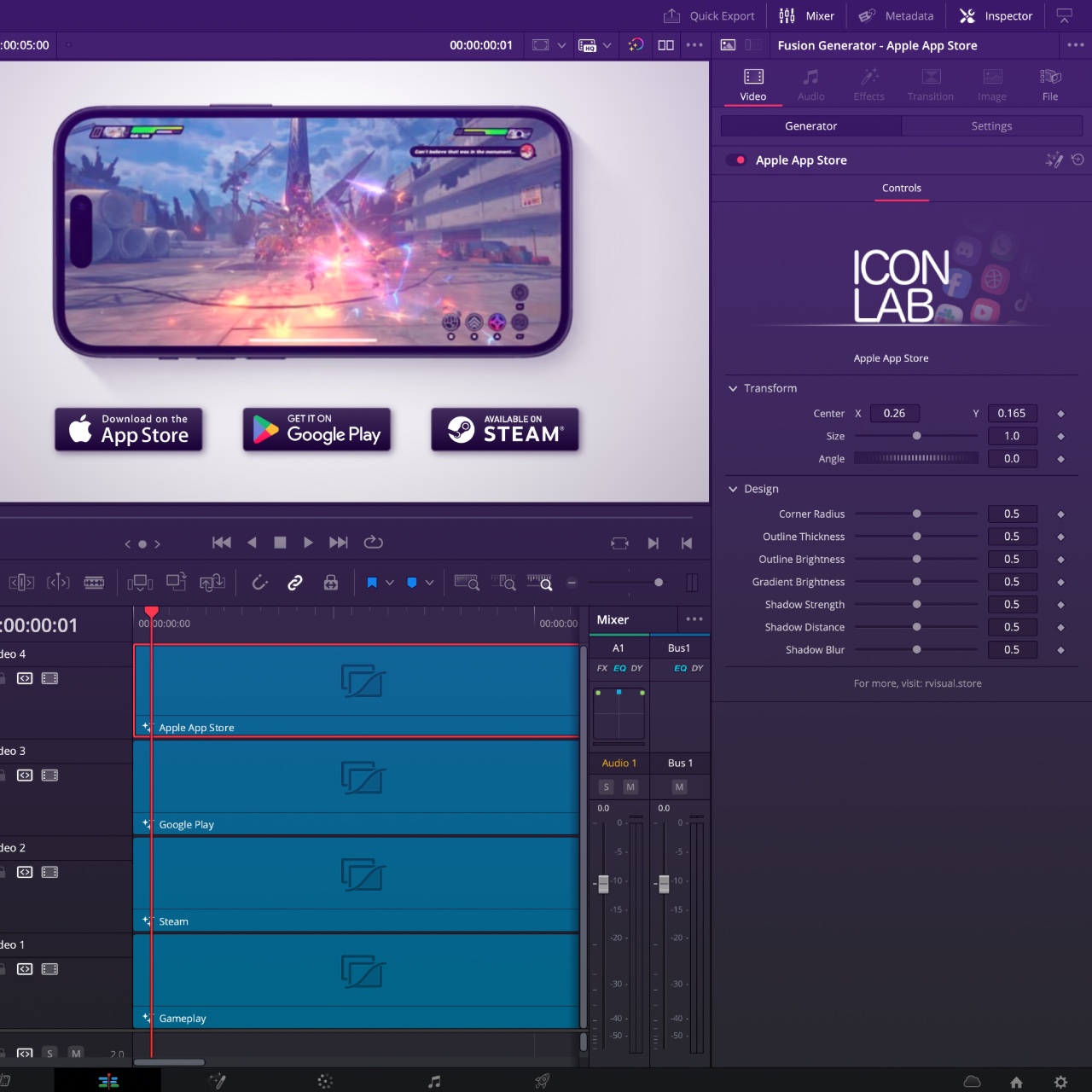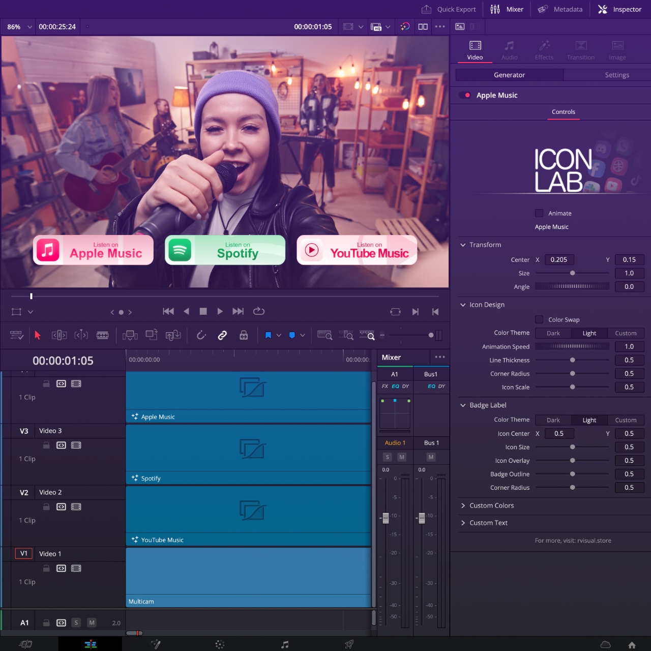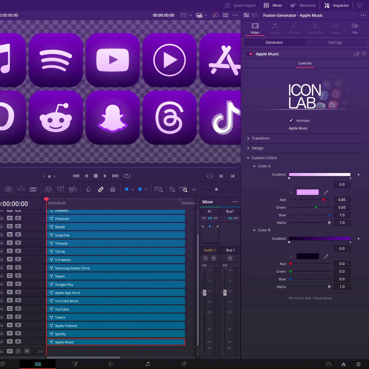 Say goodbye to fake-transparent PNGs and messy download folders. Icon Lab gives you instant access to a clean library of modern social media icons and badges – all vector-based for high-quality results and fully customizable inside your DaVinci Resolve Toolbox. Just drag and drop onto your timeline and fine-tune everything in the Inspector on the Edit page. Need fast renders? Icon Lab also includes a collection of image-based Legacy Badges for quick and easy use. It’s the fastest way to brand your content with style & precision.